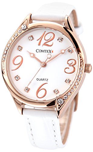 金色のケースは、白いバンド、バラ色水晶鏡面