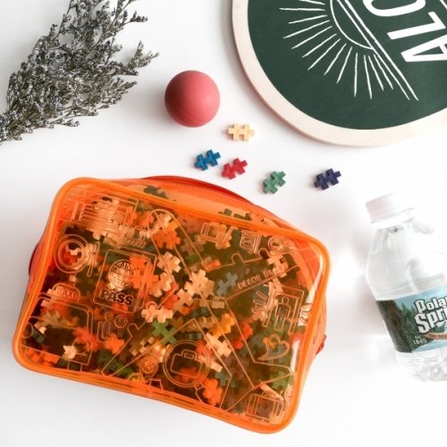 블랑블랙(BLANCBLACK) [블랑블랙] 트래블패턴 투명 파우치 [Orange]