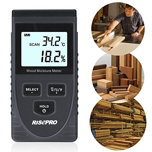 Wood Moisture Meter, RISEPRO Digital Moisture Meter Non-Invasive Inductive Wood Moisture Tester Water Content GM630