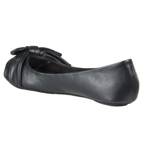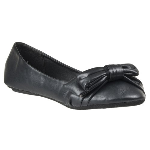 Binding : Apparel Product Description Slip into design with these "Hunter" pointed-toe ballet flats by Riverberry. These faux leather shoes feature a lovely bow detail at the toe. The slip-on styling provides ease of wear. A lightly textured outsole helps you avoid common slips. Ballet flats are ideal for wear with just about anything from jeans to capris to skirts and dresses. The black color option is complementary to virtually any ensemble. 0