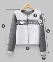 尺码 ①衣长 ②胸围 ③肩宽 ④下摆围 ⑤袖长 ⑥袖臂围 ⑦袖口围