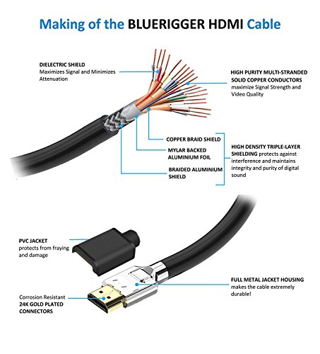 Our HDMI cable supports 18 gigabytes per second, and utilizes a one-way signal amplifier in the middle of the cable to ensure a strong transmission signal that supports full 4K HD picture quality at 60hz, as well as 480i, 480p, 720p, 1080i, 1080p, 2160p, and HDCP 2.2. Each cable is also CL3 rated, has 24K gold connectors, is 100% oxygen-free copper, and has a full shield design to ensure there is no loss of signal transmission.