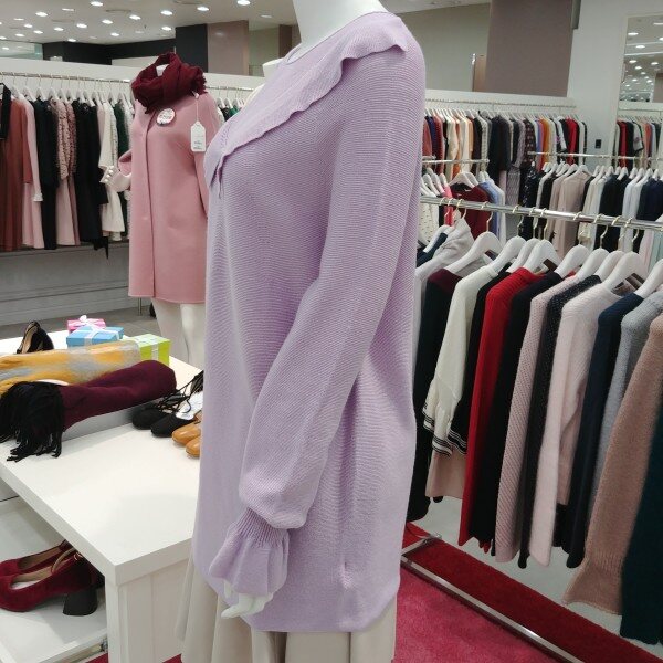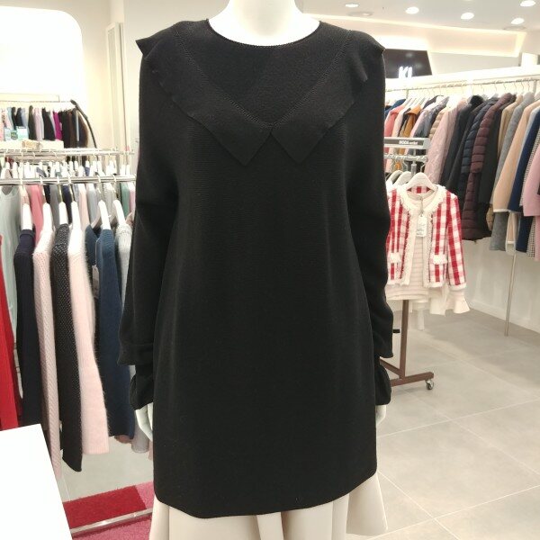 앞네크와 소매 프릴 디테일이 여성스러운 롱니트입니당 ♥♥♥