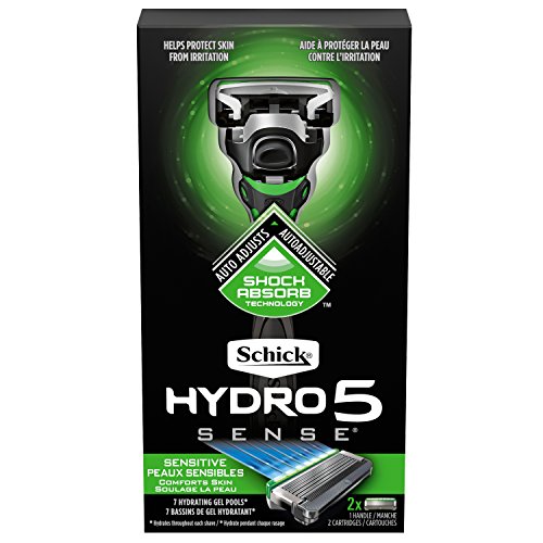 Schick Hydro Sense Sensitive Razors for Men with Shock Absorbent Technology, 1 Razor Handle and 2 Razor Blades Refills