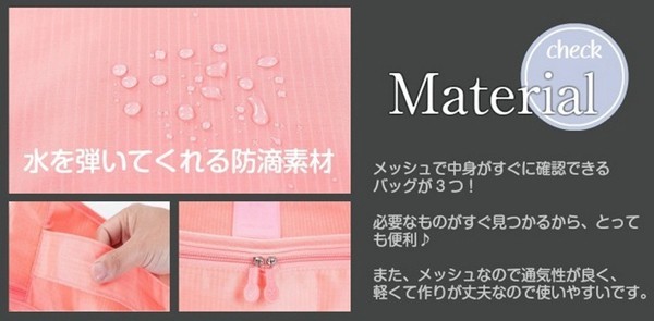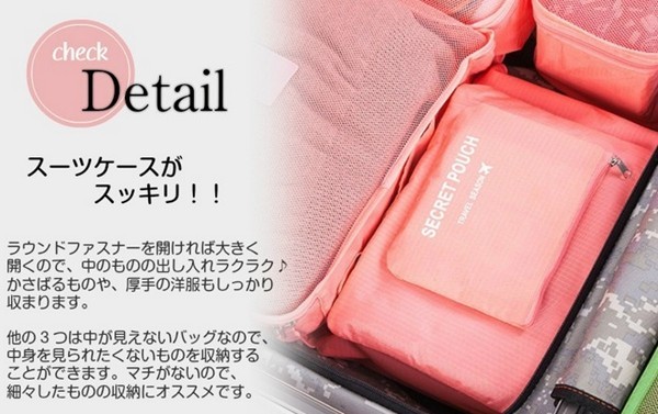 素材:ナイロン サイズ: メッシュバッグ大:幅41×高さ30×マチ幅13cm メッシュバッグ中:幅31.5×高さ28.5×マチ幅13cm メッシュバッグ小:幅30×高さ20×マチ幅13cm バッグ大:幅34.5×高さ27cm バッグ中:幅27×高さ25cm バッグ小:幅26×高さ16.5cm【POINT!】旅行にも、お家の整理などにおすすめ!6個セットでお得!スーツケースの中身をすっきり収納できるポーチです!大きさの違うポーチが6個あり、収納するアイテムで使い分けが可能になります。6個セットでお買い得です!