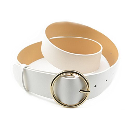 Binding : Apparel Product Description Maikun Women's Belt PU Leather Solid Color Circle Pin Buckle Waistband It's a must have belt in each lady's closet. This belt will be a delicate decor for your clothing, highlighting your taste and making you slim. Perfect match your skirts, dresses, jeans. It is really a nice belt you deserve. Features: Nice PU Leather This belt is created by nice PU leather with fine edge stitching, soft and smooth. Circle Alloy Pin Buckle The alloy buckle is durable and hard to fray. The simple circle pin buckle makes the belt stylish and easy to wear. Note:due to monitor variations colors may appear slightly different. Main Material:PU leather Length: 39.4"/100cm Width: 1.4"/3.6cm