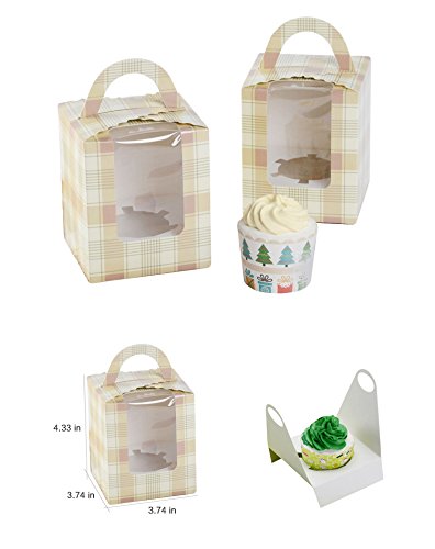 - BOX DIMENSIONS: 3 3/4" x 3 3/4" x 4 1/2" . Holder can fit standard sized cupcakes with 2 - 2 1/2" base.