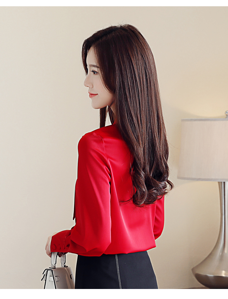大きいサイズ シフォン ブラウス 襟元 リボン シャツ 長袖 トップス