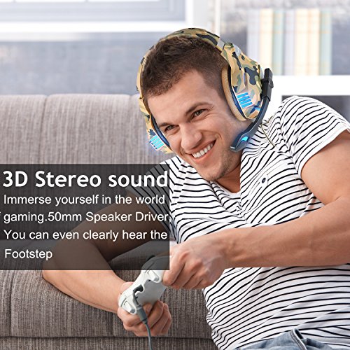 The ARKARTECH G7500 stereo gaming headset with unique camouflage design provides exceptional comfort, epic audio performance and excellent durability to deliver the ultimate gaming experience, perfect for immersing yourself in the world of gaming. High Performance The headset comes with a high precision 50mm magnetic neodymium driver to deliver high-fidelity audio and ensure excellent clarity through the entire frequency range, ideal for playing games, watching movies or listening to music.