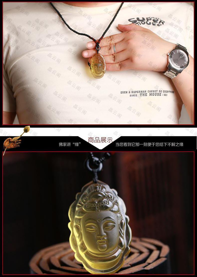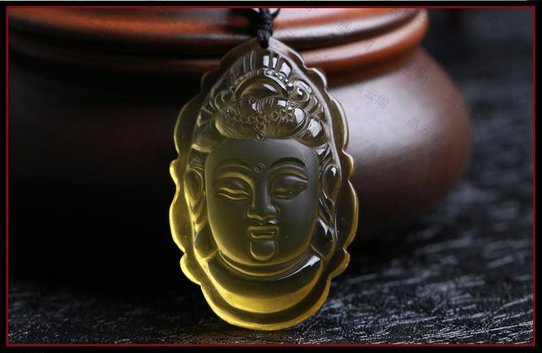 开光 天然黄水晶大日如来菩萨吊坠 生肖属羊属猴守护神男女项链