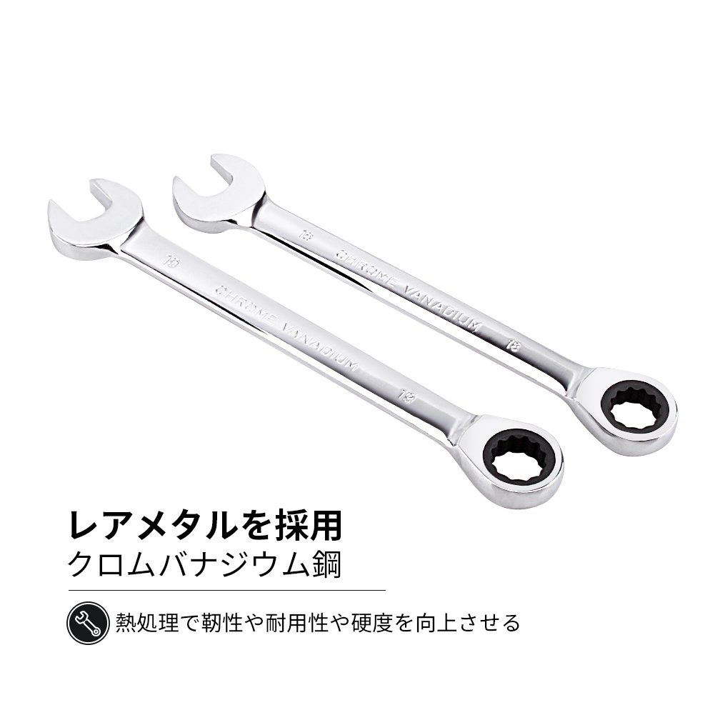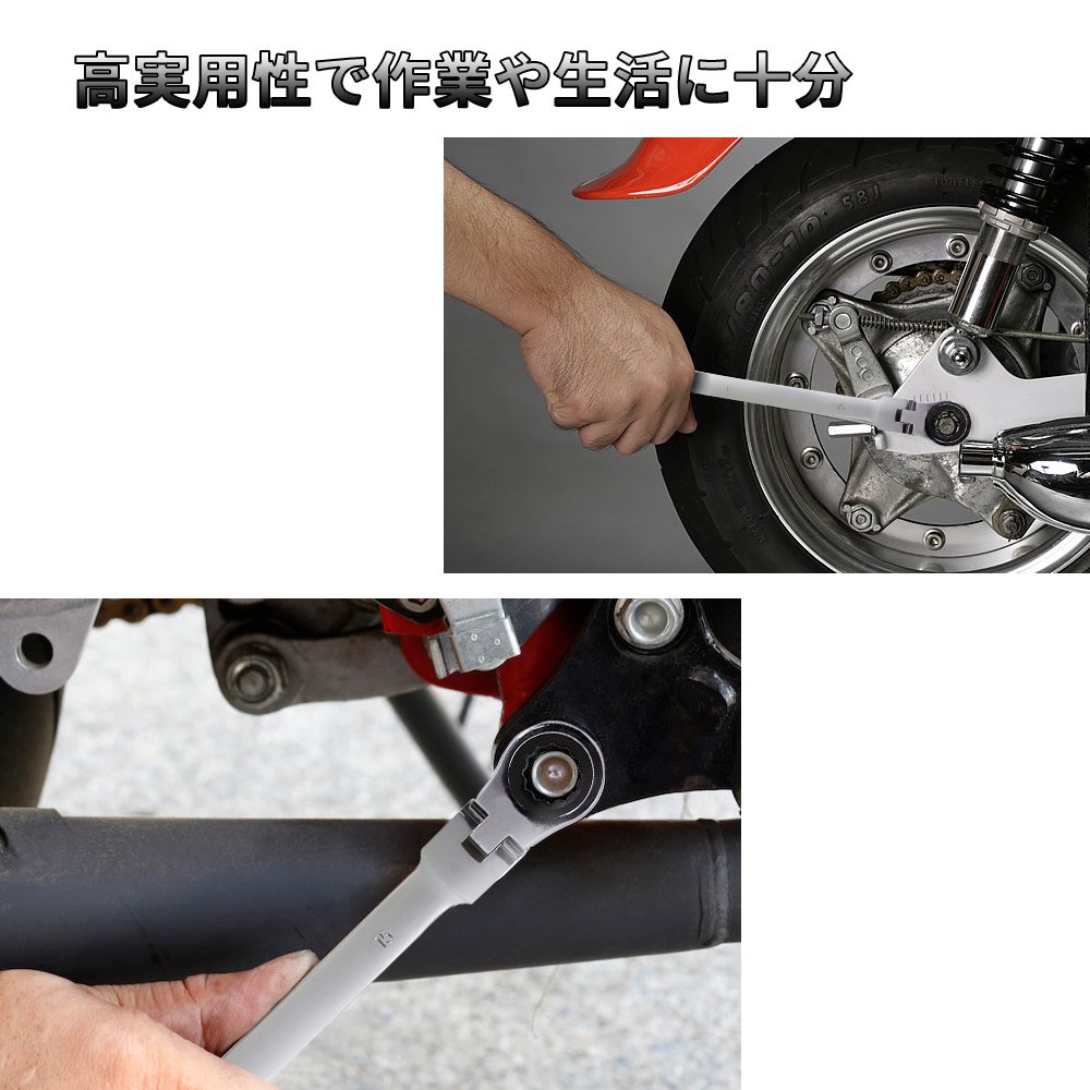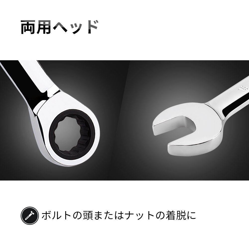 This ratchet wrench is a set of 12/8/9/10/11/12/13/14/15/16/17/18/19 mm, so you can choose the corresponding size for your purpose.