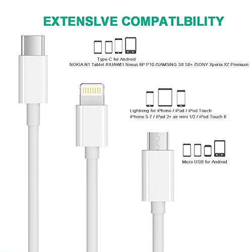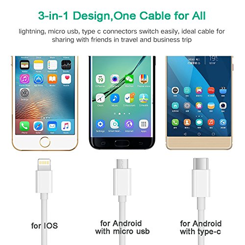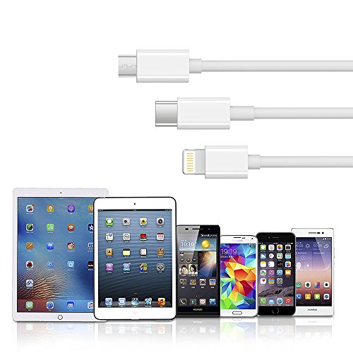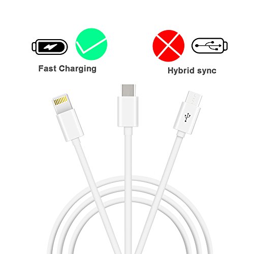 Seekpow 3-in-1 Lightning/USB-C and Micro USB Charging Cable (3.3 Feet ) - White