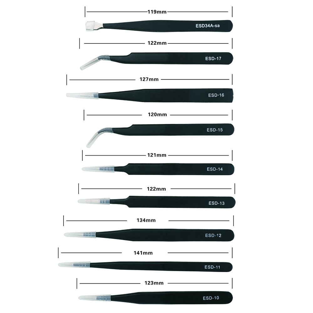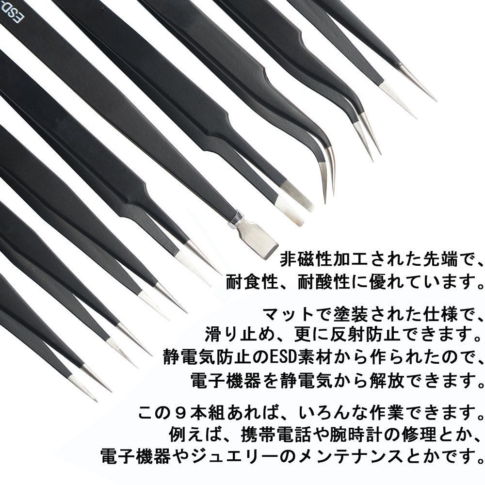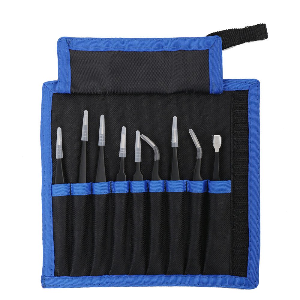It is a set of nine nonmagnetic steel fine tip tweezers.