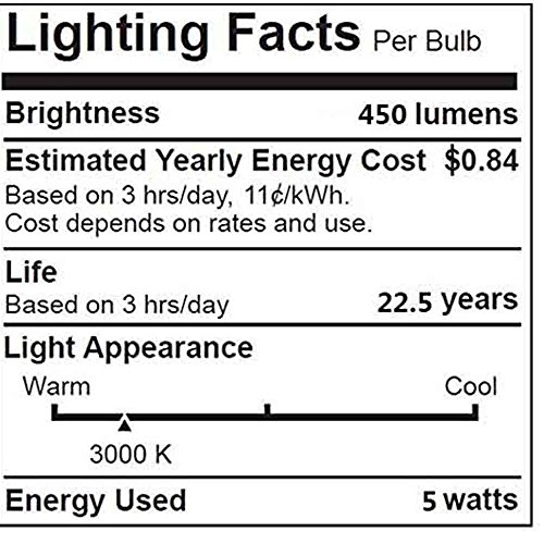 Natural Soft White 3000K, give off a bright illumination, 450 Lumens, Triac Dimmable.