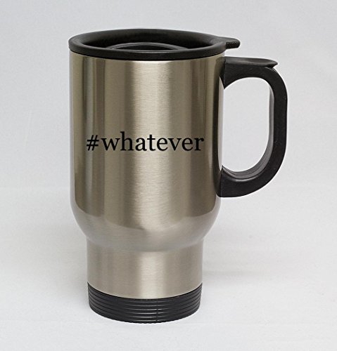 -. Title : 14oz Stainless Steel Silver Hashtag Travel Mug - #whatever