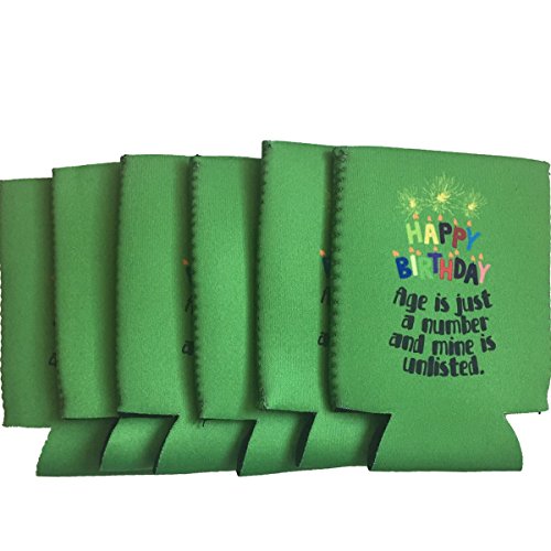 Birthday Holder for Any Age, Neoprene Cooler Sleeve, for Cans, Beer, Soft Drink, Collapsible, Set of 6.