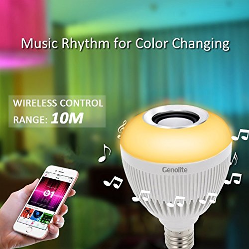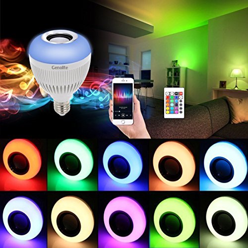 Bluetooth Speaker bulb light 12W Power LED RGBW Color Lights Wireless Control Audio Lamps Music Playing IR Remoter by Genolite