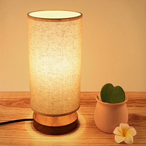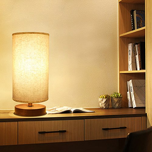 Seealle Bedside Table Lamp, Solid Wood Nightstand Lamp, Bedside Desk Lamp, Minimalist Simple Desk Lamp With Linen Fabric Shade for Bedroom, Living room, Coffee Table, Office, Dinning Table