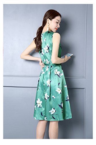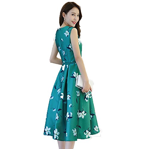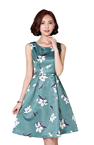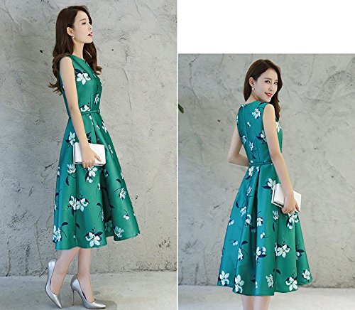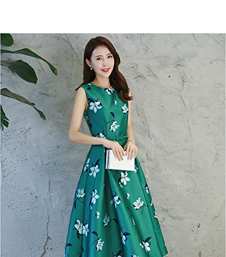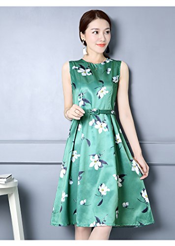 -. Title : (チョロモ) Cholmo レディース ワンピース ノースリーブ スリム黄金比 Aライン ひざ丈ドレス ベルト付 きれいめ 花柄