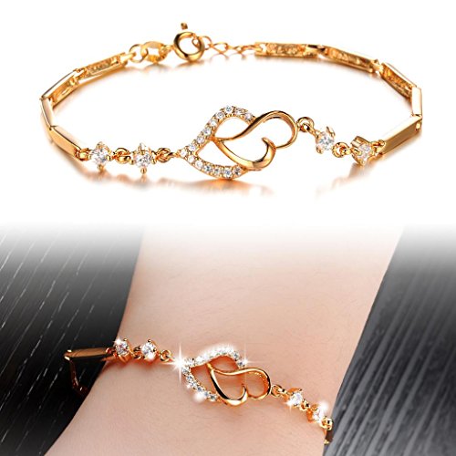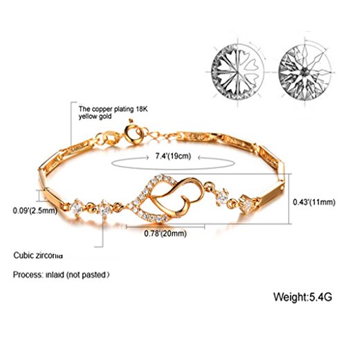 - Title : MoAndy Jewelry 18K Gold Plated Women's Fashion Charm Bracelet Double Hearts Chain Inlaid CZ Golden