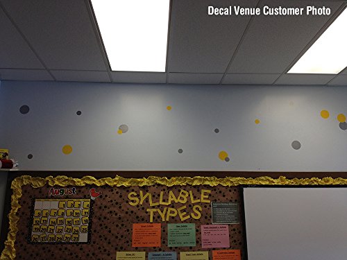 Set of 30 - Yellow / Metallic Silver Circles Polka Dots Vinyl Wall Graphic Decals Stickers