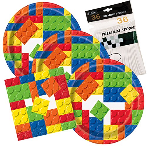 Building Blocks Birthday Party Themed Dessert Plates And Napkins includes Spoons Serves 32
