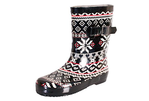 Nomad Girls Ms. Puddles II Water Resistant Rain Boots. Durable Rubber Construction with Non Skid Rubber Sole and Colorful Pattern Throughout. Imported.