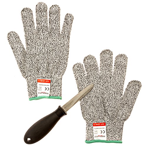 Rockland Guard Oyster Shucking Cut Resistant Glove Set with 3.5-Inch Stainless Steel Knife, Large