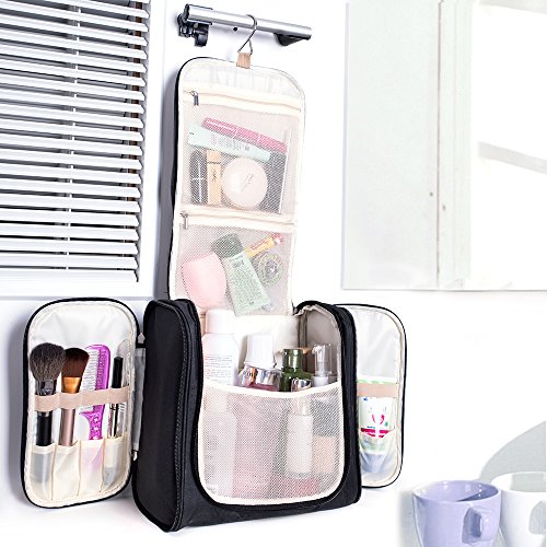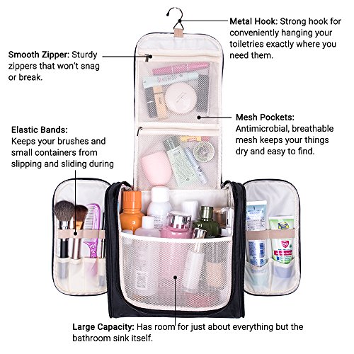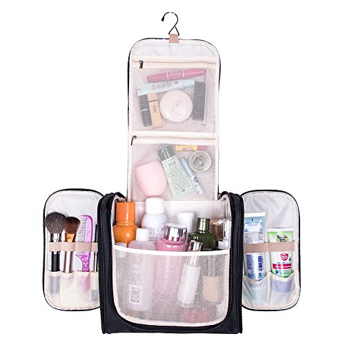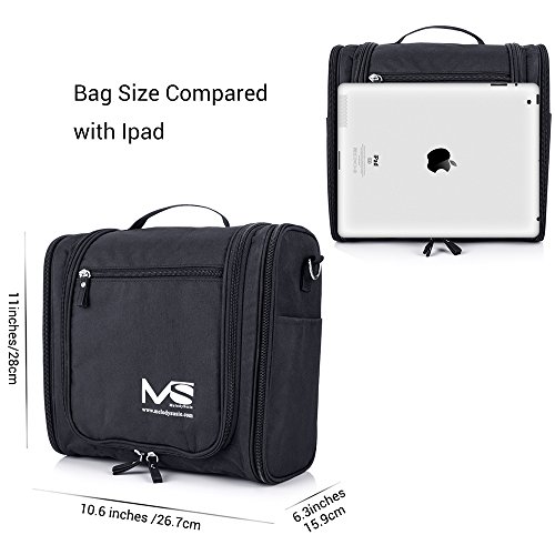 - Large Capacity – Size: 10.6x6.3x11 inches (LxWxH). Excellent capacity can meet all your different needs. Fits Full-Size bottle, suitable for family/couple or long-term travel. You can put your make-up, shampoo, soap, toothbrush, toothpaste, shaving kit and so on, all in one place. Make your travel comfortably and easily to have all your necessities in one bag