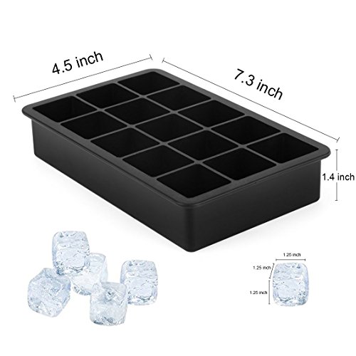 - Set of 2 black trays, each measuring 7.3 x 4.5 x 1.4 inches. Creates 1.25-inch square ice cubes. The size of the cubes fit every type of glass. Enjoy every cold drink with minimal dilution! Valentine's Day, Birthday, Anniversary, Father's Day, Christmas, Housewarming gift etc.