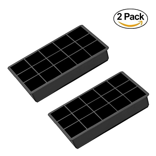 Ice Cube Trays, Docik 2-Piece Food Grade BPA Free Silicone Candy Chocolate Molds, Flexible Rubber Cocktail Whiskey Ice Tray, 1.3-Inch 15 Cubes Each, Black