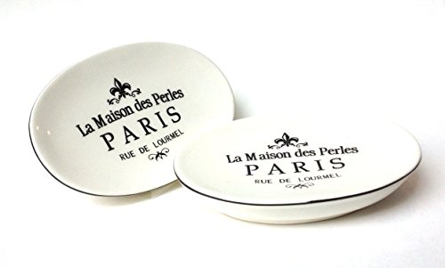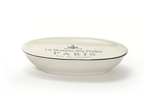 -. Feature : French-themed oval ceramic soap dish / 4 1/2 x 5 x 1 1/2 inches / Add a French flair to your vanity / P.R.Ice is for 1 soap dish (photo shows 2 to size and detail)