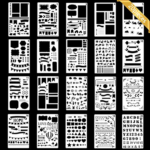 - (RICH YOUR DAILY LIFE)20 Pcs bullet journal stencils all have different design , it include all the popular patterns ,it could stimulate your creativity and rich your life