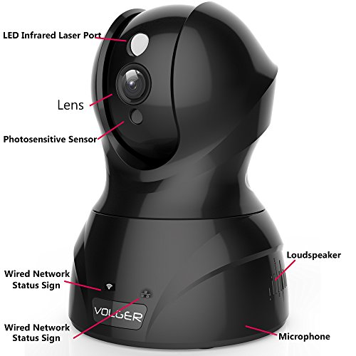 VOLGER Indoor 1080P HD WiFi Security Camera IP Camera Home Surveillance Nanny Cam Motion Detection Alert Two-Way Audio Night Vision Remote Control (Black)