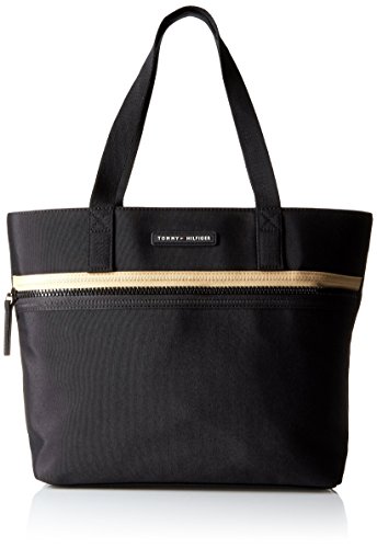 Zipper tote bag with an exterior zip pocket and rubber TH name plate