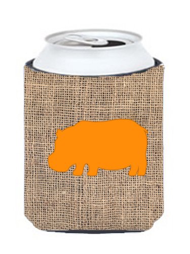 Hippopotamus Burlap and Orange Can or Bottle Beverage Insulator Hugger