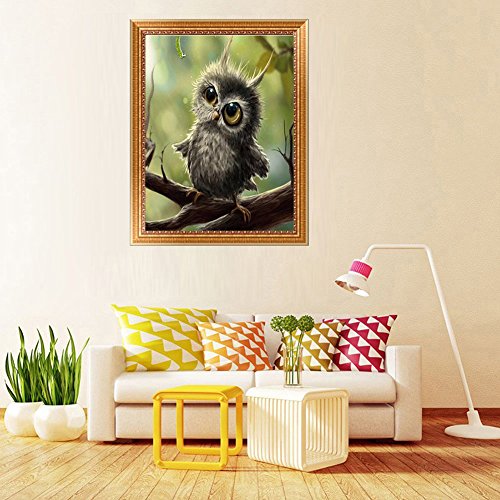 EOBROMD DIY 5D Diamond Painting by Number Kits, Cute Owl Rhinestone Painting Cross Stitch Home Decor, 10 x 10inch