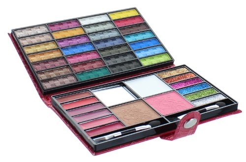 Beauty Revolution 43 Color Makeup Purse With 28 Eyeshadow 1 Blush 1 Press Powder 6 Glitter 6 Lip Gloss 1 Bronzer All In One Foldable Palette (Cherry)