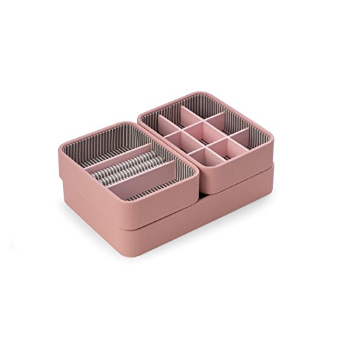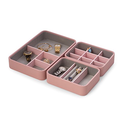 Bey-Berk AJ-BB364P Leatherette Open Face Stackable Jewelry Organizer, Pink