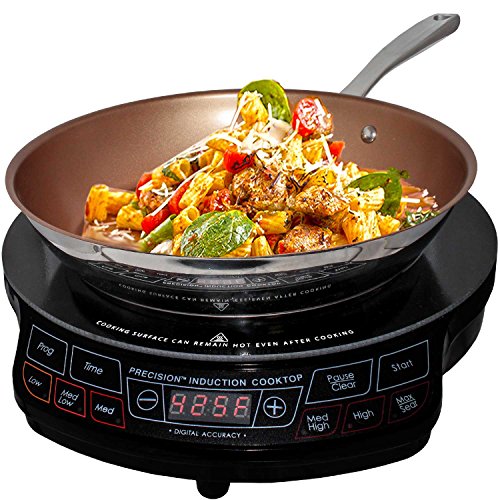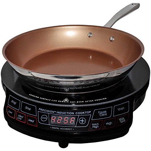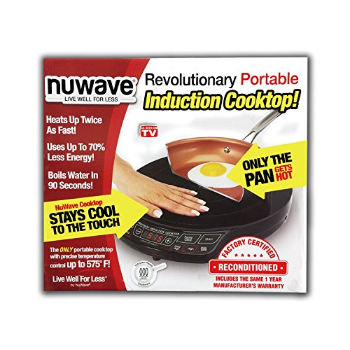 INDUCTION TECHNOLOGY The NuWave Precision Induction Cooktop is comprised of a series of induction coils (based on magnetic principles). These coils generate magnetic fields that produce a warming reaction in steel and iron-based pots and pans. In this way, heat is generated in the cookware and not on the cooktop surface, which is much more energy-efficient than traditional gas or electric ranges. Induction cooking is the most eco-friendly way to prepare meals because the method releases no toxins into the environment. Induction cooking emits no flame, so less residual heat is produced in your kitchen. The NuWave PIC remains cool to the touch where the magnetic surface is not activated. Featuring eco-friendly Duralon® Healthy Ceramic Non-Stick Coating, the 10.5-inch stainless steel NuWave DuralonTM Healthy Ceramic Non-Stick Fry Pan is perfect for virtually any cooking task. This versatile pan is perfect for use on the NuWave PIC, as well as electric and gas stoves. It's even oven-safe. The 10.5-inch pan will work great when you need a bit more space. Larger amounts of fish, vegetables, and potatoes are excellent. Easily cook for two with burgers, steaks, and chicken. You can brown tortilla shells to perfection while making fajitas, and the pan can even make pancakes. Never Burn Food Again! No Boil Over, No Mess! No Fire, Safe For Anyone!Feature