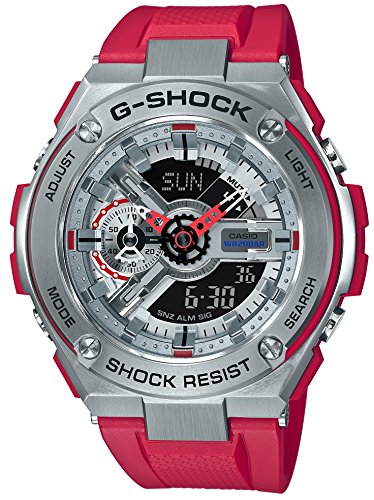 Brand, Seller, or Collection Name:Casio Model number:GST-410-4AJF Part Number:GST-410-4AJF Model Year:2018 Item Shape:Round Display Type:Analog and digital Case diameter:5.2 centimeters Case Thickness:16.1 millimeters Band Color:Red Special features:World time, Stop watch, Timer Item weight:3.84 Ounces Movement:Quartz