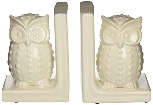 Urban Trends Ceramic Owl Bookend, White, Set of 2