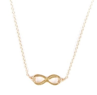 Love, love, love. You can never have enough of it! A person's capacity to give and receive love is as endless as the stars in the sky! Remind someone how much you love them with this beautiful infinity symbol necklace. 16" gold filled fine chain. 1/2" gold dipped infinity charm. Spring ring closure. Infinite love message card.Feature