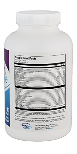 Fortifeye Vitamins Macular Defense Multivitamin is a DOCTOR RECOMMENDED all natural multi-vitamin dietary supplement that's a synergistic blend of vitamins, minerals, phytonutrients, whole foods, vegetable extract, and enzymes combined into one convenient USP certified tablet for optimal results. Each nutrient was chosen based on the highest manufacturing standards and metabolic uptake ability by the body (bioavailability) and is packed with our most powerful level of antioxidants - nutrients include vitamin B6, B12, C, D, all 8 forms of vitamin E, biotin, and more. This ALL NATURAL eye and total body care supplement is made without without any synthetic nutrients, dyes, trans fats, or artificial sweeteners. This unique multi vitamin also SUPPORTS EYE HEALTH with a complex mix of macular carotenoids including 18 mg of lutein, and 4.2 mg zeaxanthin isomers per serving, while it does not include zinc which allows you to customize your treatment of macular degeneration with your eye care provider. Includes a total 90 tablet pills taken 3x daily with meals for optimum absorption. Perfect for men, women, kids, children, teens, adults, and seniors.Feature