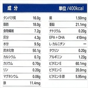 原材料:米、コーンフラワー、動物性油脂、加水分解大豆タンパク、家禽レバー、コーングルテン