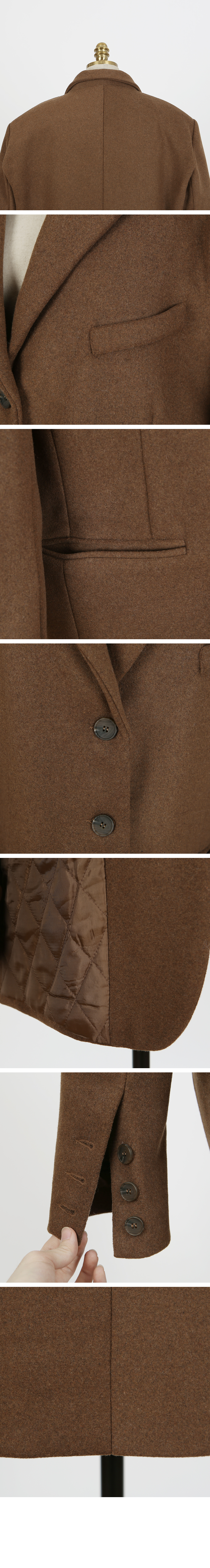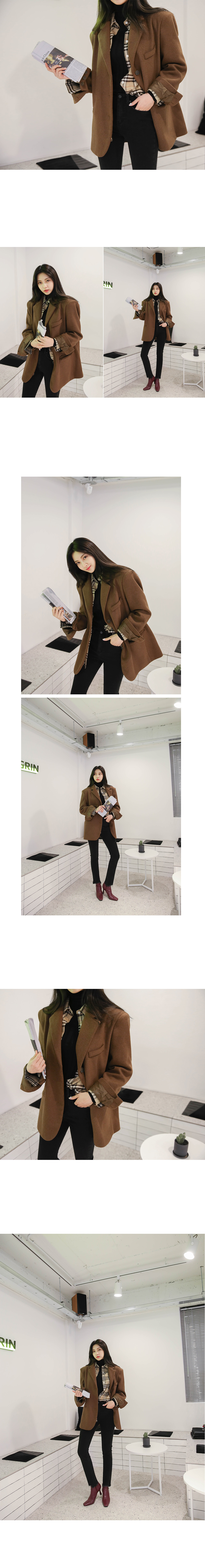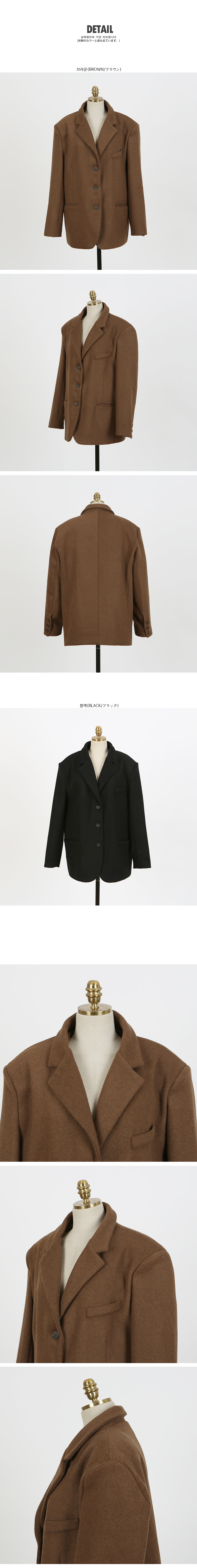 박시한 느낌이 멋스러운 박시자켓하나 소개해드릴께요~ 군더더기 없는 깔끔한 디자인에 오버핏이 더해져 멋스러운 실루엣을 연출해줘요 기본 테일러드 카라 디자인으로 제작되었으며 살짝 오버핏으로 제작되어 도톰한 이너와 함께 착용해도 불편함이 없이 착용가능해요 울60 혼방된 소재감으로 보온성을 높였으며 안감은 누빔으로 따뜻하게 입기 좋아요 바스트라인 페이크 포켓으로 밋밋한 룩에 포인트를 주었으며 양사이드 포켓으로 실용성을 더했답니다 평소44사이즈의 수진모델이 착용시 전체적으로 여유있게 맞았으며 44-66사이즈분들까지 알맞게 맞으실꺼에요~