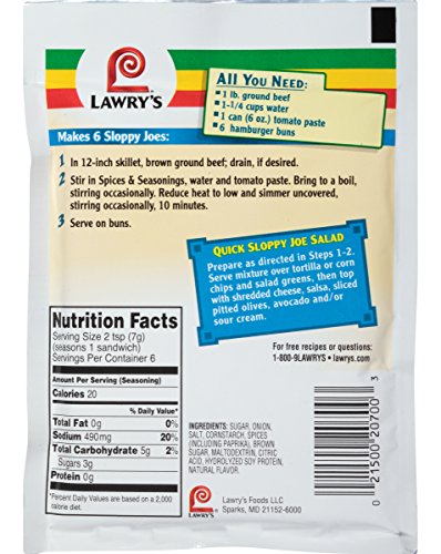 -. Title : Lawry's Sloppy Joe Seasoning Mix, 1.5 oz (Case of 12)