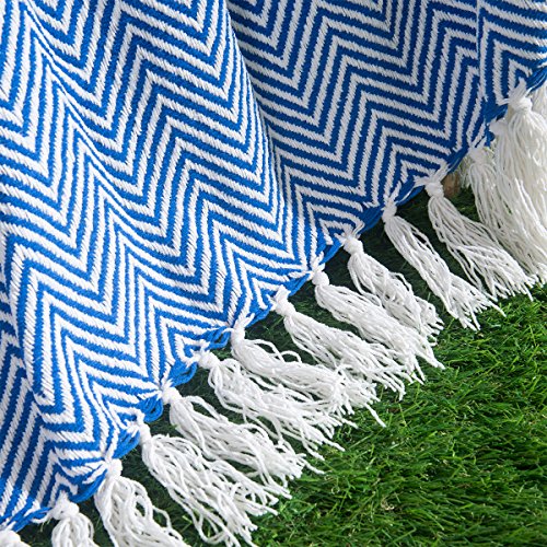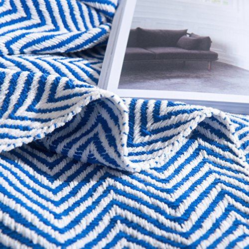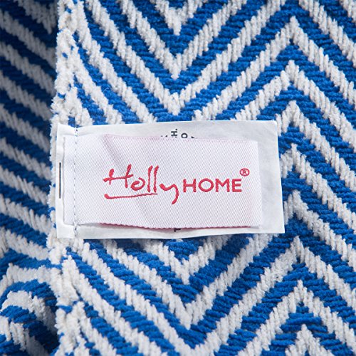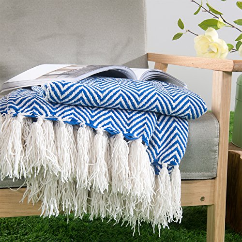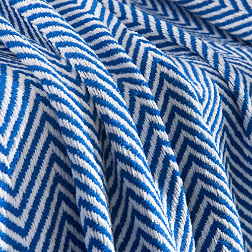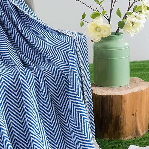 HollyHOME Lightweight Soft Herringbone Throw Blanket with Tassels, 50 x 60 Inch, All Season Blanket for Bed or Couch, Blue