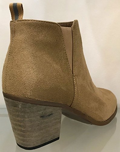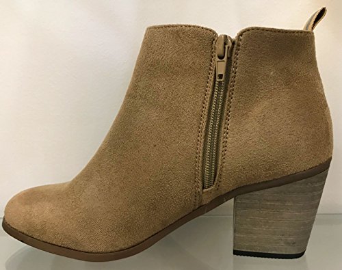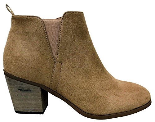 (WW)/Women's/Boots/DIRECT FROM USA/WW Nora-1 Women Ankle High Block Stack Heel Pointed Toe Booties Boots Taupe