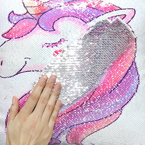 Studio : touchhome Publisher : touchhome Binding : Baby Product Product Description About the Products: ★ Name: Mermaid Unicorn Pillow Case ★ Material: Sequin Soft Suede ★ Size: 16"x 16" ★ Color: Rainbow Unicorn, White Rainbow ** Quality: the item is made of high quality sequin and soft suede, it is durable, every product passes through our strict review.Features: ★ Unique unicorn sequined printing design ★ Magic sequin!!! Reversible sequin, when your finger flips on the sequins, unicorn design is going to be sliver colors, it's funny and cool ★ You can see many bright spots, and when the sun shines on the pillowcase, it looks like a star in the universe ★ Suitable for room, sofa, bed, cars, chairs ,watching TV, reading, christmas etc... The best decorations for your room , sofa, chairs. ★ Cute unicorns are sure to win children's hearts and give them more fun and time to relax. ★ Multi-function: Relaxing and entertaining at the same time. Package include:
